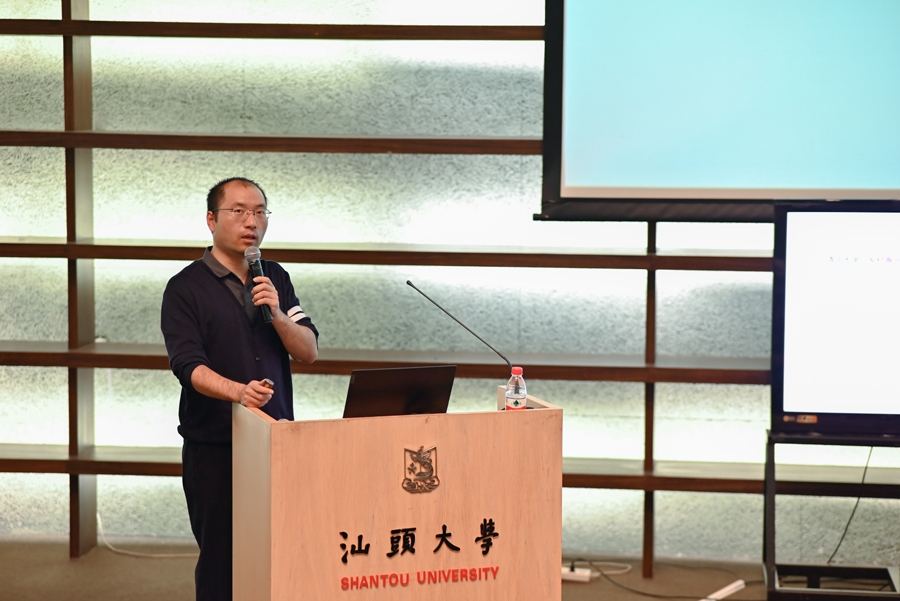 理学院海洋与生物教工党支部书记、生物系主任王树启以《科技扶农 实践育人》为题进行分享。他重点介绍了“党建+科技”如何推动农村实践与教育发展,并结合案例展示了科技扶农在培养人才、推动产业发展方面发挥的积极作用。