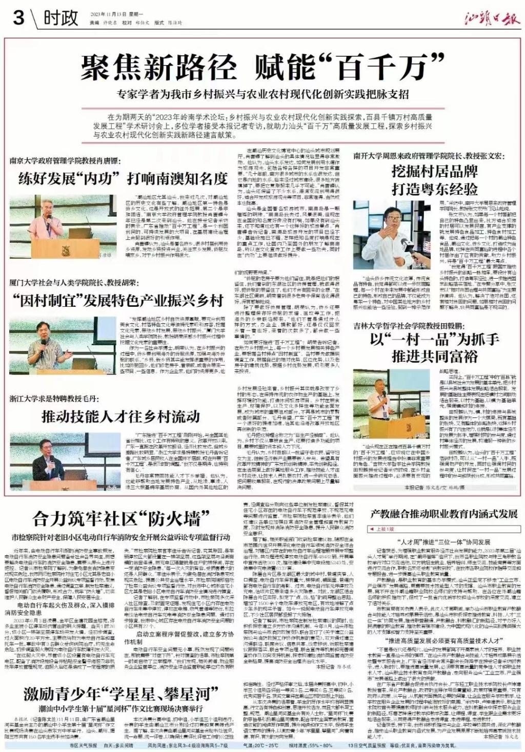 “潮汕地区尤其外网天堂,我来过几次,对潮汕地区的历史文化有些了解。潮汕地区第一特色是侨乡文化,这是开放式的往外拓展,第二个是宗族团结。”南京大学政府管理学院教授肖唐镖今年已经是第二次来到外网天堂。他在接受记者采访时表示,广东省推动“百千万工程”,是一个利国利民的、可持续发展的大项目,在基层建设治理上会起到很好的引领作用。