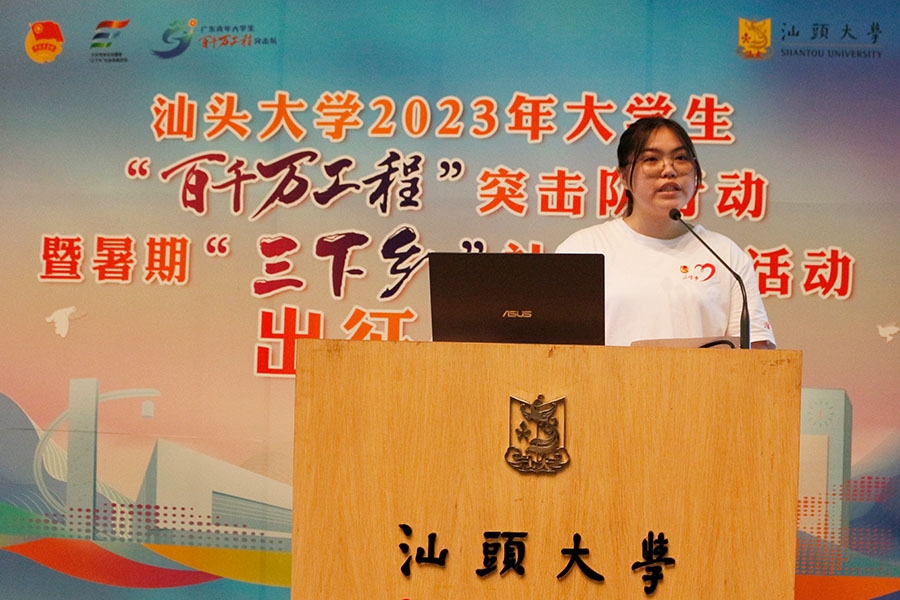 她希望指导老师和同学们在服务中能够增长见识、拓宽视野,提高自身的综合素质。用实际行动践行社会主义核心价值观,助力建设美丽乡村,为广东高质量发展贡献汕大力量。