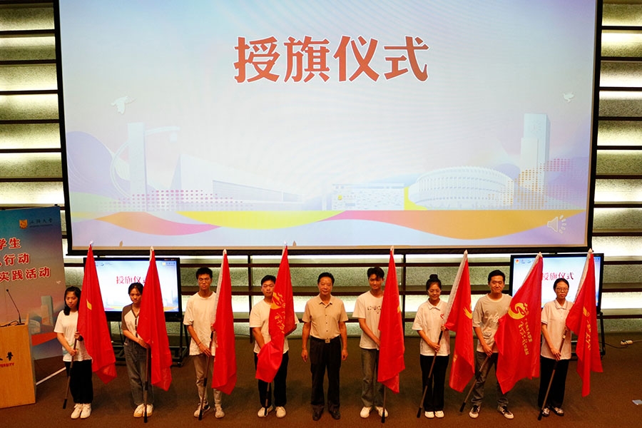 校党委副书记周镇松、校团委书记姚溱、商学院副院长郭功星、文学院党委副书记吴瑛凡,以及各院暑期社会实践活动团队指导老师出席活动。仪式由校团委副书记陈益纯主持。