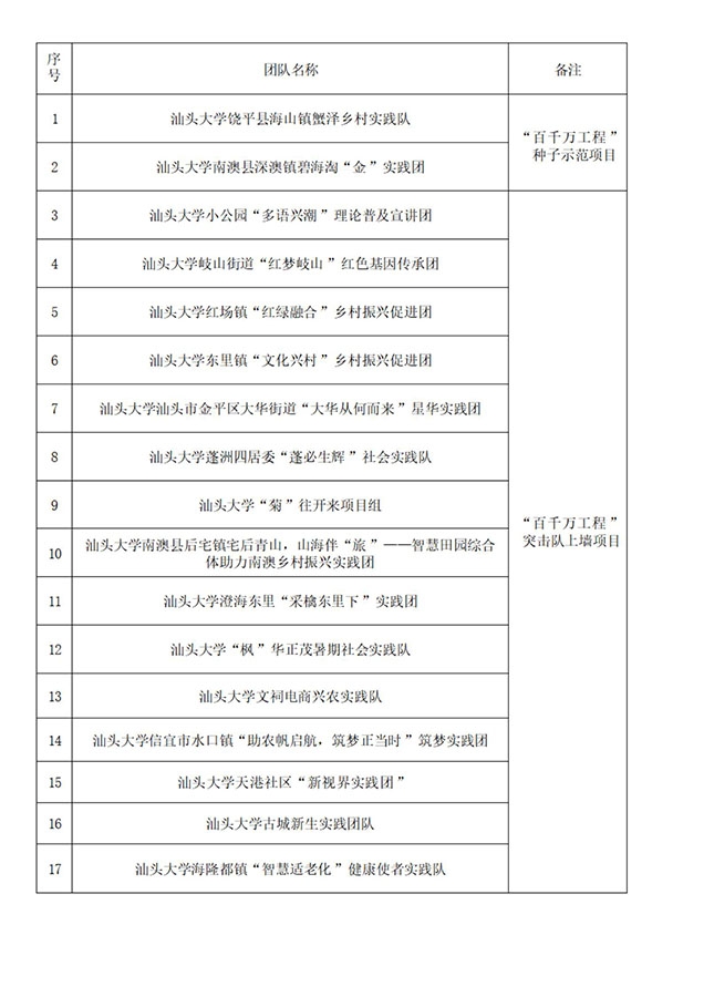 这些项目与暑期“三下乡”社会实践活动相结合,校院两级共57支队伍(近750人)将分赴广东茂名、揭阳、潮州、外网天堂和贵州遵义、赤水等地开展调研、科普、支教和重走长征路等活动,他们将深入了解当地经济、教育、文化等方面的情况,并积极参与当地社区建设、环境保护等工作。