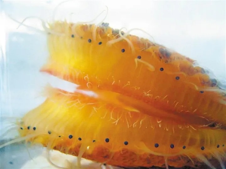 闭壳肌、外套膜也都呈金黄色的华贵栉孔扇贝