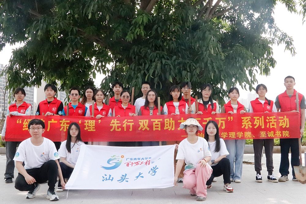 在此次植树活动的组织过程中,理学院“百千万工程”突击队——科普向“汕”团队积极对接地方需求,他们时刻牢记“普及科学知识,建设美丽广东”的团队目标与使命,用专业知识助力“绿美广东”生态建设,争做乡村绿化的践行者,争做绿美广东的守护者。通过参与组织和投身此次共植“青年林”活动,科普向“汕”团队成员深感只有做到持之以恒,久久为功,善作善成,才能让我们生活于其中的美丽家园天更蓝、地更绿、水更清。