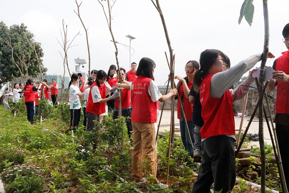 为了将生态文明建设不断推向深入,认真落实广东省委关于深入推进绿美广东生态建设的有关要求,引领团员和青年积极投身“绿美广东”生态建设,持续推进理学院青年大学生以“百千万工程”突击队再建新功,助力“双百行动”,理学院、至诚书院开展了“绿美广东‘理’先行 双百助力百千万”系列活动。4月20日,理学院团委组织团员青年走进金砂街道大窖社区,共上主题团课、共植“青年林”,以实际行动助力生态文明建设。