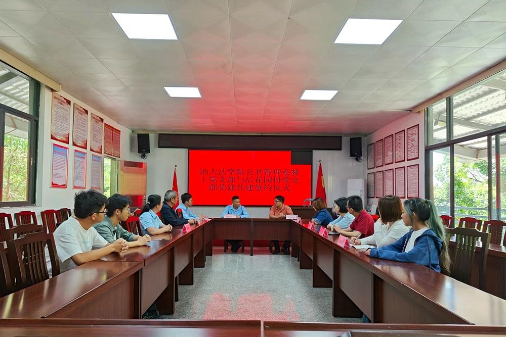 5月10日上午,外网天堂侨乡振兴研究中心与后花园村举行结对共建框架协议签字仪式。外网天堂法学院副院长、侨乡振兴研究中心主任邱国良教授,公共管理系主任汪曲副教授,公共管理系教工党支部副书记廖逸儿博士,教务王润老师,法学院教师、调研基地负责人畅冬妮博士以及后花园村党支部书记余程江、副书记吴瑞发等后花园村两委班子成员出席了本次签约仪式。仪式由后花园村党支部成员余泽辉主持。