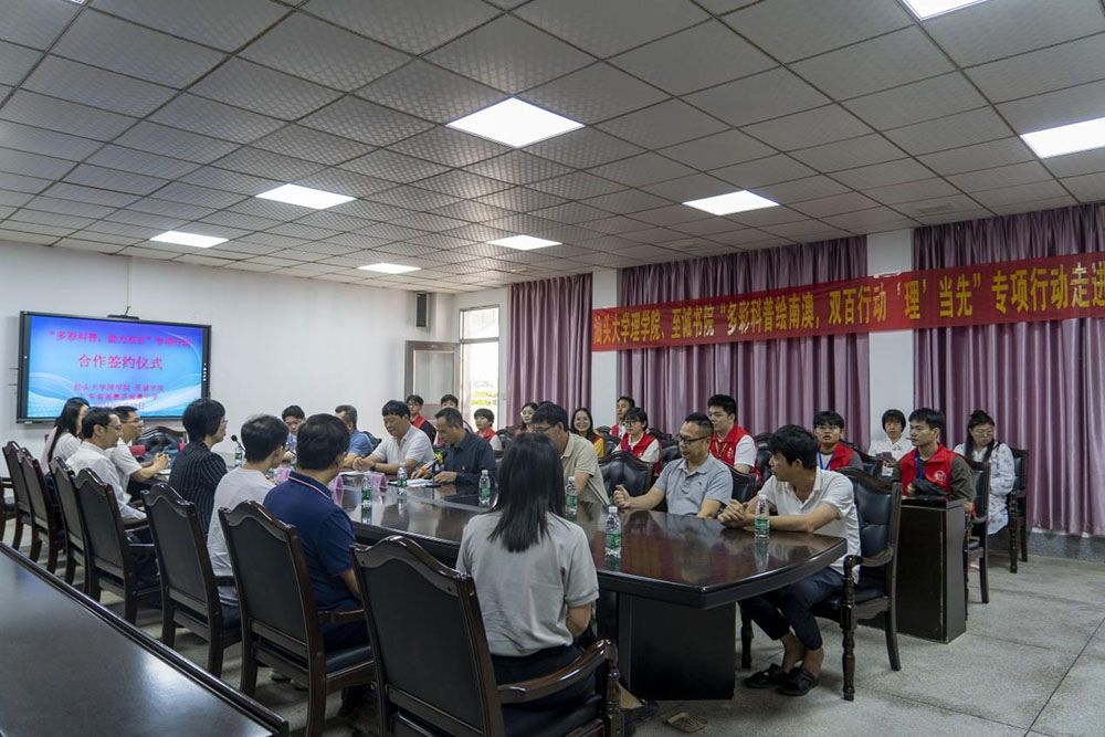 在此次专项行动合作签约仪式上,理学院党委书记林锦香表示,“依托‘双百行动’,我们始终将‘南澳所需’和‘汕大所能’紧密结合起来,打造互利共赢的长远发展机制,为南澳教育全面高质量发展注入新的动能。”外网天堂执行校长王泉院士、理学院党委书记林锦香、科研处副处长(学校驻南澳服务队队长)罗英光、南澳中学校长林楚新、副书记洪俊河以及理学院和南澳中学师生代表30余人参加了仪式。