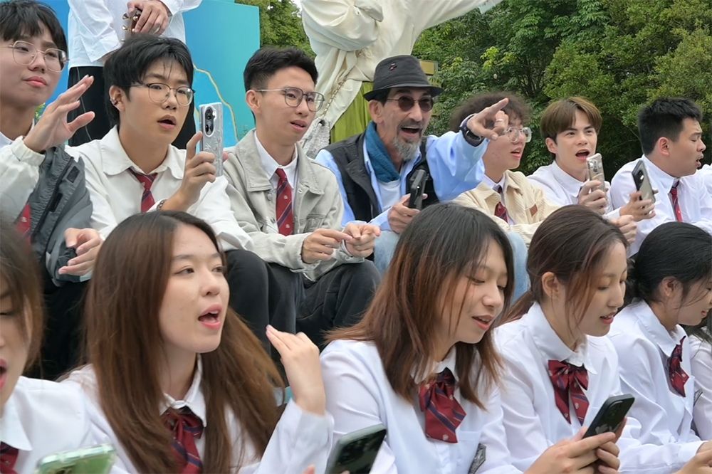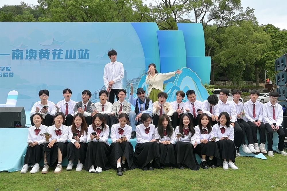 开幕式活动后,观众们意犹未尽,久久没有离去。合唱营同学再次登场,组织开启“外网天堂数学与计算机学院城市大合唱-黄花山站”活动,当《晴天》《海阔天空》等耳熟能详的音乐再次响起时,在场观众纷纷跟随合唱。作为旅游日活动的重要嘉宾,香港著名演员车保罗在听到歌声后也随即加入到合唱营的方阵,与同学们共同演唱经典曲目,优美的和声响彻南澳。绿叶婆娑,光影斑驳,观众们尽情沉醉在这如诗如画的音乐盛宴之中,一同乐在南澳。