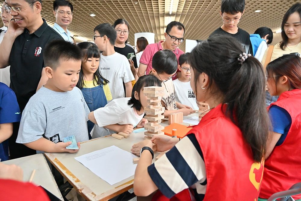 与会人员共同参观了工学院科技创新成果展作品。本次科技创新成果展内容丰富多样,精彩纷呈。活动现场设有“结”识机械、“芯”型智慧、“承”重桥梁、“视”探生命等多个摊位。3D打印模型、智慧遥控电子小车、桥梁和塔模型、生医工黏土模型等多种多样的模型向大家展示了工学院学子的创新意识、创造精神和实践能力,更有“驰影争锋”(小车遥控游戏)、电碰迷宫挑战、积木塔游戏、“梦幻彩虹雨”等多个游戏摊位让每一位参与者都能感受到科技的无限魅力。