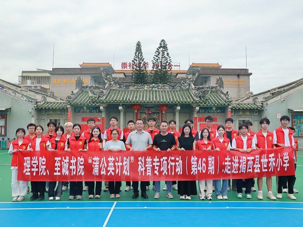 为深入推进“双百行动”落地落实,以“双百行动”助力“百千万工程”见实效、建新功,进一步增强高校服务地方经济社会发展的责任和能力,理学院、至诚书院联合揭阳市揭西县于10月25日在揭西县共同举办“多彩科普绘揭西,‘双百行动’‘理’当先”科普专项行动。此次活动旨在通过科学普及,培养中小学生的环保意识,激发中小学生的科学兴趣,进而树立创新意识、培养创新精神。