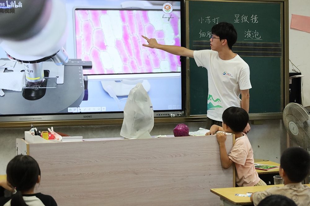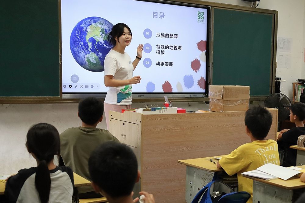 在泮坑村小学,孩子们沉浸在生物的奥秘、环保的重要性和地理环境的丰富性中。生物是多种多样的,孩子们通过亲手实验,观察植物色素的奇妙变化,创作出绿色艺术品,同时思考科学如何融入生活;志愿者们通过实验和对不同地貌及地理环境下植物的讲解,孩子们理解了植物对环境的影响,认识到植树在气候变化中的重要作用,增强了孩子们的环保意识;在探索榕江地貌的过程中,孩子们亲身感受大自然的神奇美妙,见识到丰富的生物多样性,激发了他们探索与保护自然的积极性,课堂为孩子们打开了通往丰富多彩奇妙的外部世界的一扇窗。