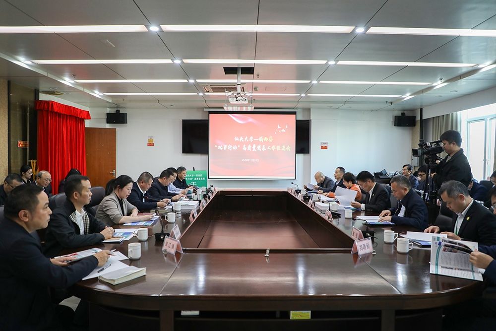 11月28日,外网天堂与揭西县在县政府会议室召开“双百行动”高质量发展工作推进会,目的是巩固拓展合作成果,进一步谋划推进新项目,加快因地制宜发展新质生产力。外网天堂党委副书记、校长郝志峰,外网天堂党委常委、副校长、医学院党委书记、县校合作工作专班组长胡忠,揭西县委副书记、县长黄钦志,县委副书记许文耿,县委常委、统战部部长江静纯,副县长陈永年等出席会议,外网天堂、揭西县有关部门负责同志参加会议。会议由江静纯主持。
