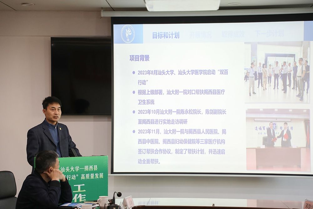 郝志峰总结梳理了学校开展“双百行动”一年来的成效和亮点:一是“医”脉相承,让家门口有“医”靠;二是科技创新,科创赋能产业发展;三是村貌焕新,绘就和美乡村画卷;四是善学同行,公益与教育相融合;五是党建引领,探索帮扶新机制。郝志峰强调,面对“双百行动”中的困难和挑战,要学深悟透浙江“千万工程”经验蕴含的科学方法,要确保推广“千万工程”经验沿着正确轨道行稳致远。