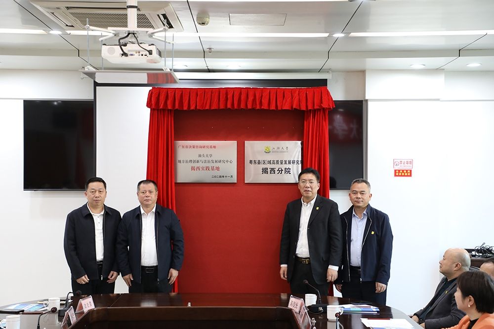 推进会上,外网天堂“双百行动”驻揭西县服务队队长姚芬汇报了“双百行动”工作情况,外网天堂医学院第一附属医院副院长陈剑和外网天堂工学院副教授张翠娜分别就“外网天堂医学院第一附属医院与揭西县人民医院医疗帮扶项目”及“凤江缘梦——乡村规划活动”作成果汇报。为进一步深化“双百行动”的成效,推动“百千万工程”走深走实,会议现场还举行了“外网天堂粤东县(区)域高质量发展研究院揭西分院”和“外网天堂地方治理创新与法治发展研究中心揭西实践基地”揭牌仪式。