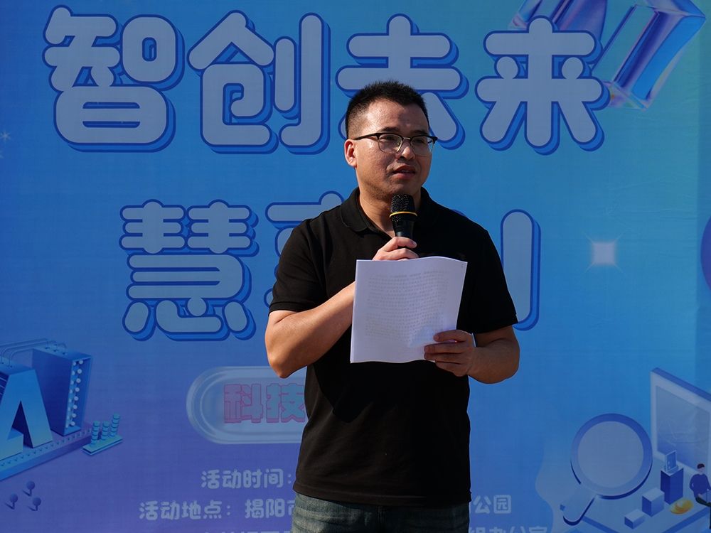 为深入学习贯彻党的二十大和党的二十届三中全会精神,贯彻落实广东省“双百行动”的决策部署,加强高校与地方的合作,以科技力量助推“双百行动”,积极响应“百千万工程”的号召,充分发挥广东省青年大学生“百千万工程”突击队的人才优势,引导广大青年学子发挥专业所学,将理论与实践相结合,不断为乡村振兴汇聚青春才智。12月7日,工学院党委积极联系中共揭西县委人才工作领导小组办公室和棉湖镇人民政府,在云湖公园共同开展“智创未来 慧享AI”科技成果展。外网天堂医学院科研处处长兼“双百行动”驻揭西县服务队队长姚芬,棉湖镇党委委员、组织委员黄卫新,棉湖第二中学副校长李继兴,外网天堂工学院组织员、团委负责人张凯梁,工学院团委副书记林展乔和项目指导教师吴嘉俊、王婉等出席活动,活动由棉湖第二中学团委书记方展鸿主持。
