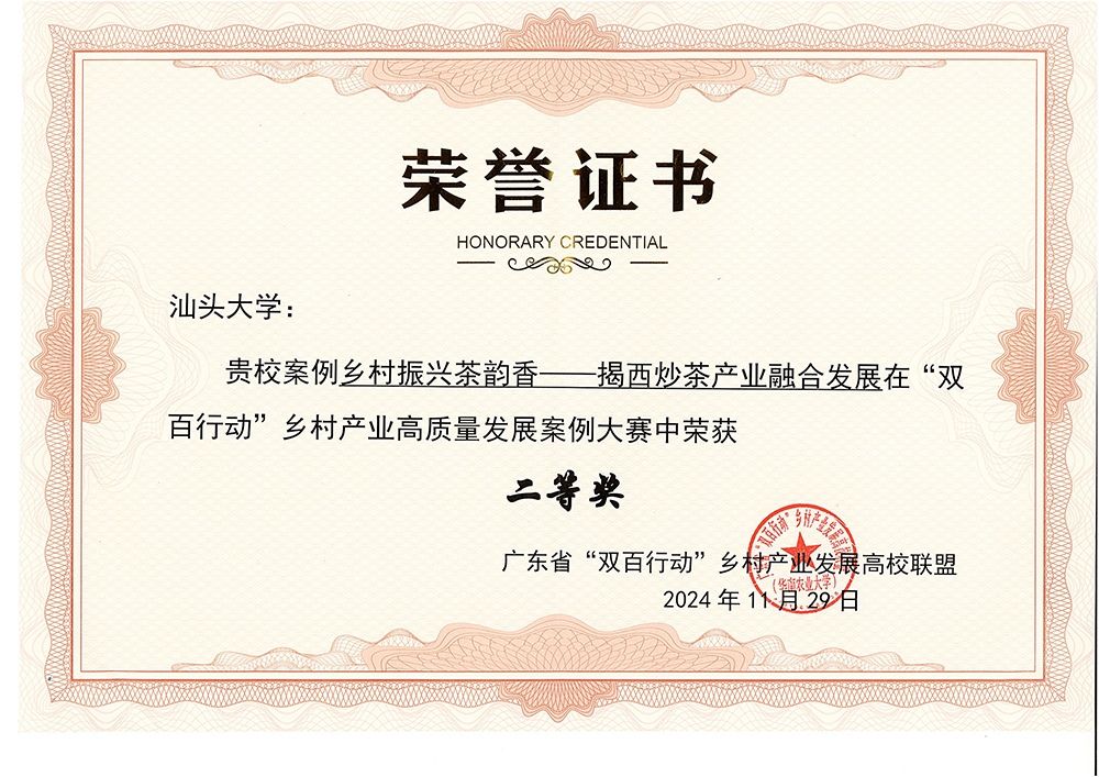 自2023年以来,商学院党委贯彻落实学校“百千万工程”部署,深入推进“双百行动”,在南澳县、揭西县积极谋划“揭西炒茶产业融合发展”“橄榄绿映乡村业,酒香梦绘‘百千万’”“南澳县绿色产业高质量发展研究”等5个项目,与当地经济和产业发展所需的“双向奔赴”,为当地的经济社会发展贡献商院力量。今年6月,由商学院梁强院长、陈名芹副教授、陈创斌博士等师生团队参与共建的揭阳川流不息农业发展有限公司“榄黄香”橄榄酒示范基地获评广东省“双百行动”乡村产业发展高校联盟产业示范基地,为企业的产品营销和可持续健康发展奠定了坚实基础。