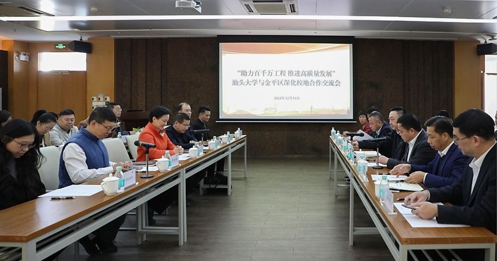 与会人员观看了金平区“百千万工程”宣传片,随后围绕校地合作项目开展研讨交流。有关学院、部门的负责同志总结梳理了学校与金平区开展校地合作以来的项目成果,并结合金平区各领域的实际情况和具体需求,深入探讨进一步加强校地合作的路径与模式。