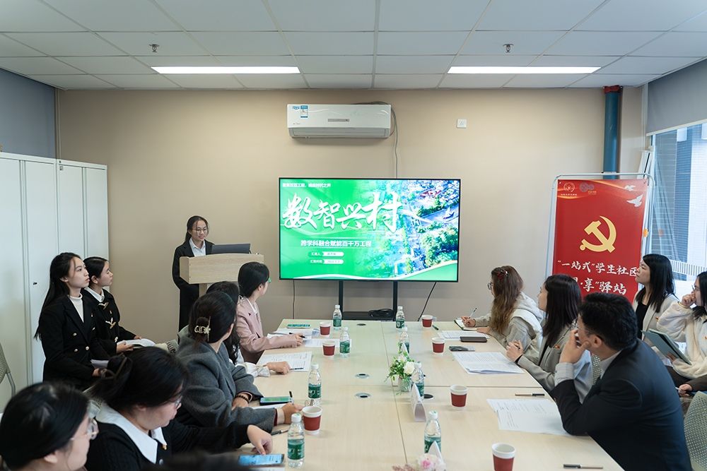 “数智兴村”实践队队长康思敏聚焦乡村文旅振兴,以“数智兴村——跨学科融合赋能百千万工程”为题,分享团队致力于打造“数字 + 智慧 + 文旅”新模式的历程,通过下乡调研、搭建文化景观数据库、设计文旅方案等助力当地文旅发展;“薪火红动”实践队队长谢艾彤以“红潮印记——红色文化传播新范式助力‘百千万工程’”为题,讲述团队运用“红潮印记”小程序、“英烈地图”和红色课堂等创新形式,吸引更多年轻人加入传播红色文化行列;外文系学生党员余宁悦、陈雪晴以“多语宣讲——多模态话语助力中华优秀传统文化‘走出去’”为题,以宣讲“南澳1号”和揭西火炬村的案例畅谈语言优势传播地方文化;自由交流环节,吕嘉欣和唐泳瑜紧扣语言学科特色分享“推普助力乡村振兴”经验,激发同学们思考如何发挥语言优势为乡村振兴添活力。