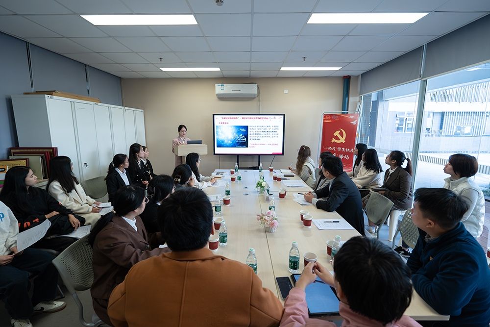 本次主题党日以主题交流会的形式开展,旨在讨论文学院学生党员如何发挥语言学科优势,助力“百千万工程”,为地方经济社会发展贡献智慧和力量。参加交流会的还包括结对共建的党政办公室党支部书记、主任曾锐,党政办公室党支部党员代表丘嘉闻、翁琪,文学院外文系教师党员代表王洪卉,以及外文系学生党支部、中文系学生党支部党员,入党积极分子代表等。会议由文学院党委副书记吴锳凡主持。
