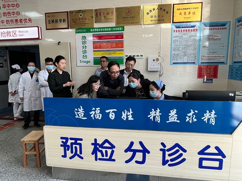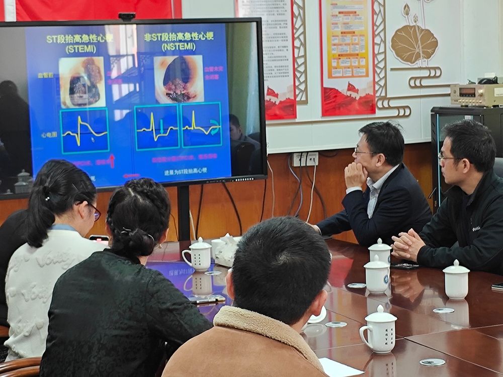 在实地调研环节,在揭西县人民医院张优惕副院长及一附院派驻专家黄贤锡副主任医师的陪同下,一附院胸痛中心专家团队实地走访了急诊科、介入室、心内科及心脏重症监护室,对各科室进行了深入调研并提出具有针对性的指导意见。