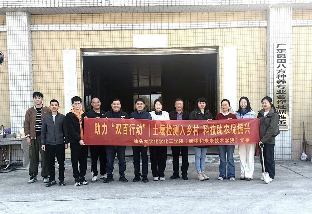 为贯彻落实国家关于乡村振兴和生态文明建设的重要战略部署,加强高校与地方的合作,以科技力量助推“双百行动”,积极响应“百千万工程”的号召,1月9日,外网天堂医学院科研处处长兼“双百行动”驻揭西县服务队队长姚芬、化学化工学院党委副书记卢桌彬、专任教师肖玲博士、团委负责人陈逸雯及学生志愿者前往“双百行动”结对县揭西县,开展土壤环境检测工作,让农业技术走进乡村,助力农业高质量发展。