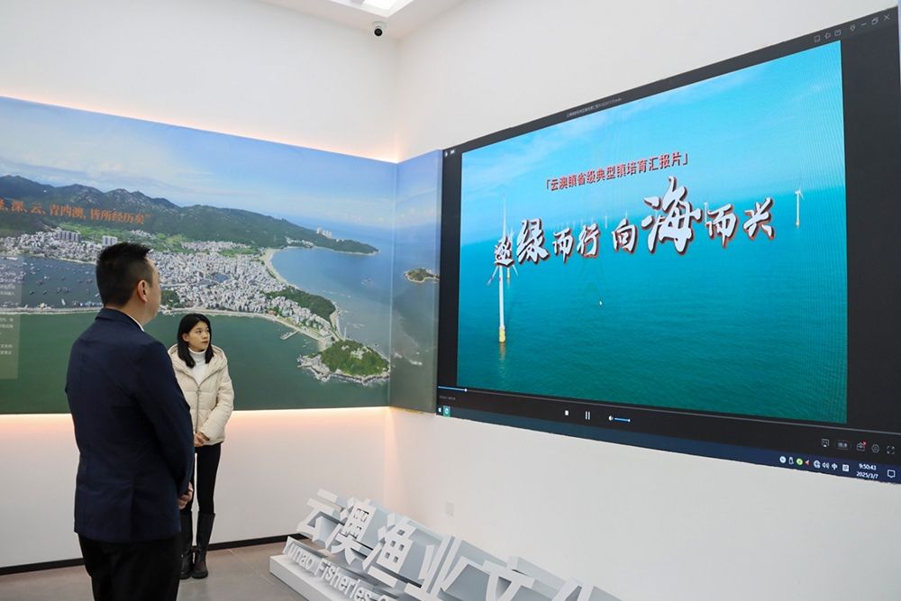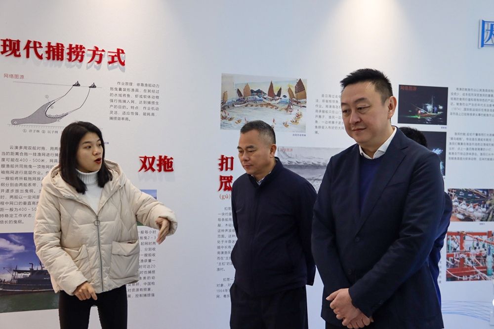 调研组首站抵达云澳渔业文化馆,参观科技助农与“双百行动”展览。该馆的展陈设计工作由外网天堂承担,师生团队通过查阅文献、实地走访、现场拍摄等形式进行调研整理,形成约1.2万字的展览文本以及“云澳全域风貌图”等重要图片。南澳县有关人员向调研组详细讲解了云澳渔业的发展历程、渔俗文化以及渔业发展的现状,通过图文音像鲜活呈现出云澳渔业源远流长的历史和底蕴深厚的文化。唐锐在参观时指出,学校要持续发力,充分发挥学科和人才优势,加强与南澳县在渔业文化挖掘、渔业科技创新等方面的合作,共同推动云澳渔业高质量发展。