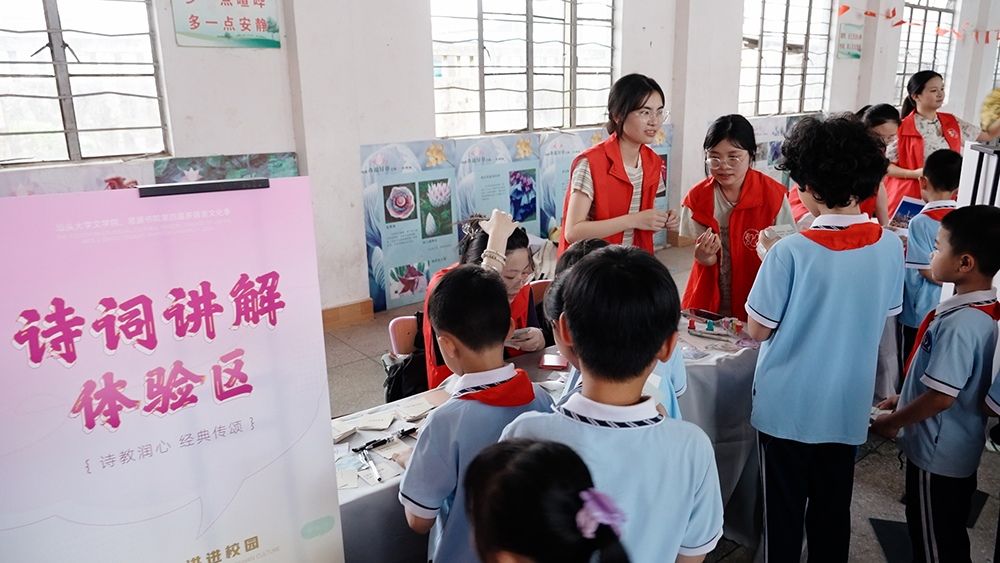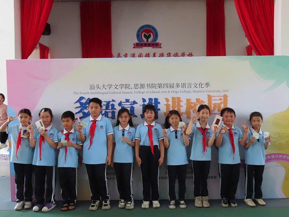 “看到孩子们对这次活动的期待与喜悦,我深切感受到美育实践对乡村教育的独特价值。”美德华侨学校校长汪伟军在与大学生交流时表示,“特别感谢汕大学子以寓教于乐的方式,为孩子们精心策划多语宣讲活动,让诗词吟诵、非遗技艺等传统文化在孩子们心中生根发芽。期待未来能继续通过‘大手牵小手’,实现双向赋能,共促成长。”