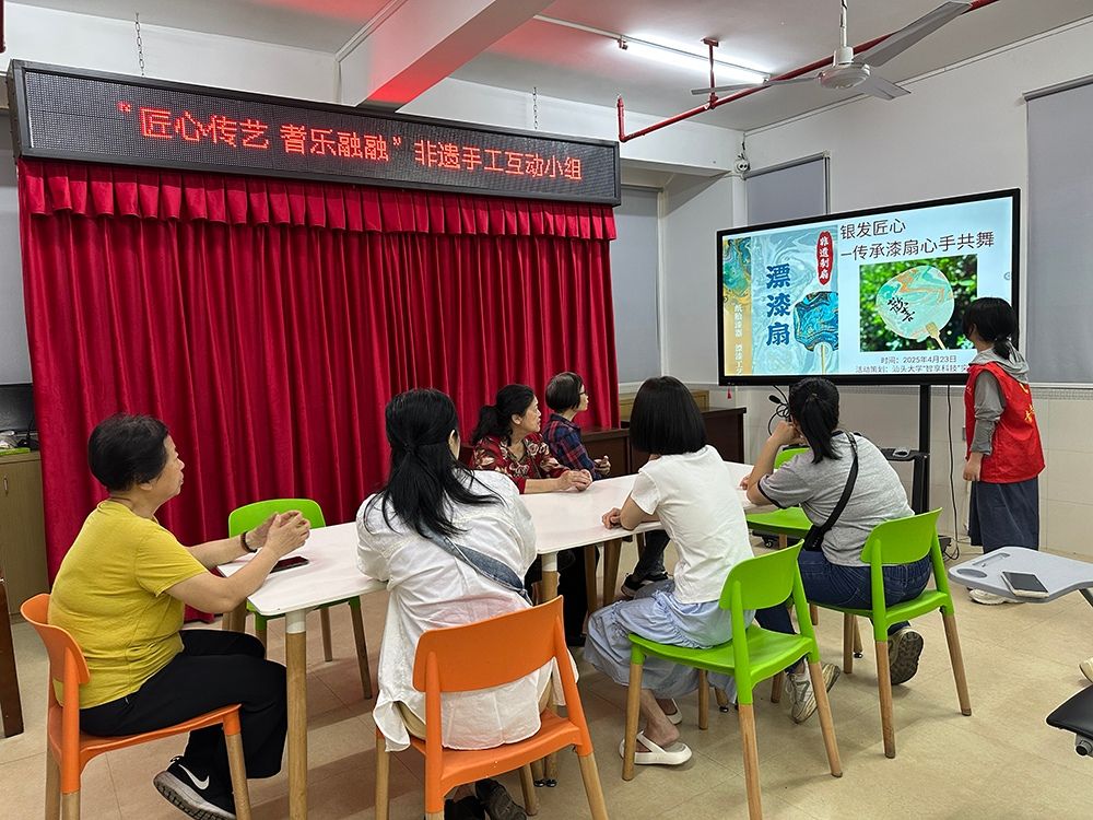 本次“银发匠心·传承漆扇心手共舞”活动不仅为老年人提供深入了解和体验非遗文化的机会,更促进了不同年龄段群体之间的交流与互动,提升了社区的凝聚力和文化氛围。