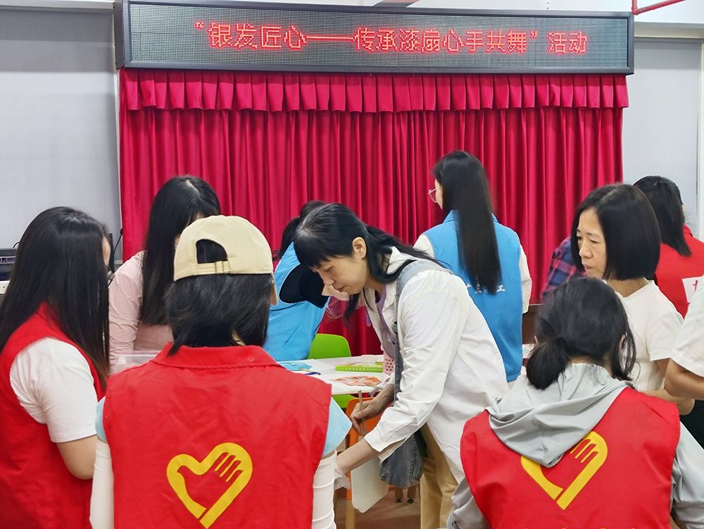 在非遗漆扇制作环节,老年人与志愿者一同动手,共同参与漆扇的基础制作。老人们根据自己的喜好,对漆扇进行个性化装饰,增添了许多富有创意和情感的元素,每一把漆扇都成为了独一无二的艺术品。在装饰过程中,老人们与志愿者们相互交流、相互启发,分享制作过程中的心得与感受,增进了彼此之间的了解与友谊。一把把精美的漆扇不仅承载着老人们的智慧与情感,也见证了年轻一代对传统文化的热爱与传承。