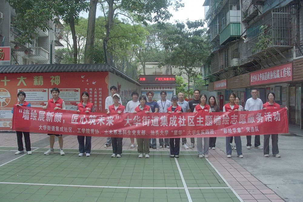 为深入学习贯彻习近平总书记关于党建带团建的重要讲话精神,贯彻落实广东省“百县千镇万村高质量发展工程”要求,充分发挥党支部的战斗堡垒作用和党员的先锋模范作用,激发党团组织活力,健全党建带团建的长效机制,深化“青春建功”工程,同时引导党员和团员青年在艺术创作中传承红色基因、培育创新精神、提升审美素养、增强文化自信,工学院土木工程本科生党支部、外网天堂“星华”大学生实践团、工学院青年志愿者协会、“绘彩筑梦”突击队组织相关专业和绘画特长的党员、团员前往大华街道集成社区开展“百千万工程”主题墙绘社会实践活动。