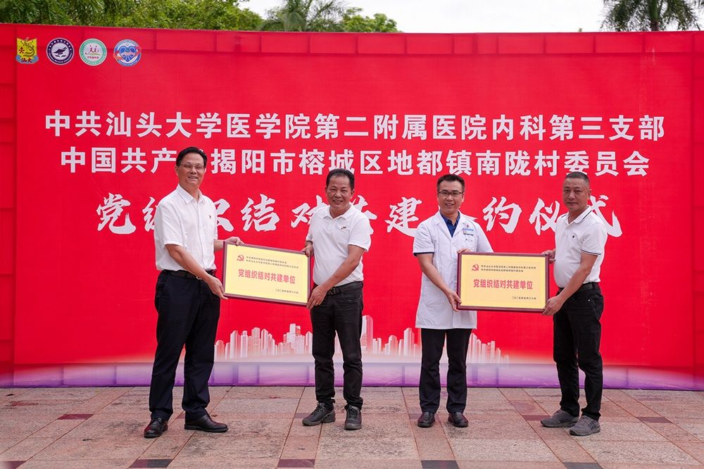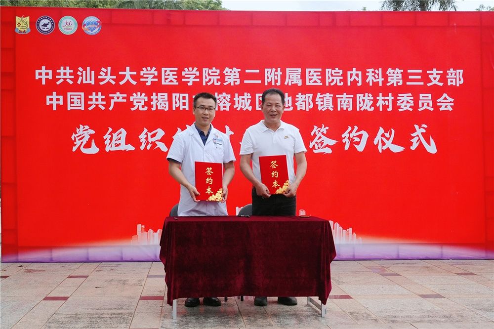 现场还举行了附二院内科第三党支部与中共地都镇南陇村委员会的结对共建仪式。在双方党员代表及群众的见证下,附二院内科第三党支部书记周添标与南陇村党委书记郑耀亮共同签署了共建协议。通过组织联建、资源联享,双方将共同探索“党建+健康”的合作模式,畅通基层就医绿色通道,为基层群众提供更可持续的医疗保障,助推提升当地群众健康福祉。