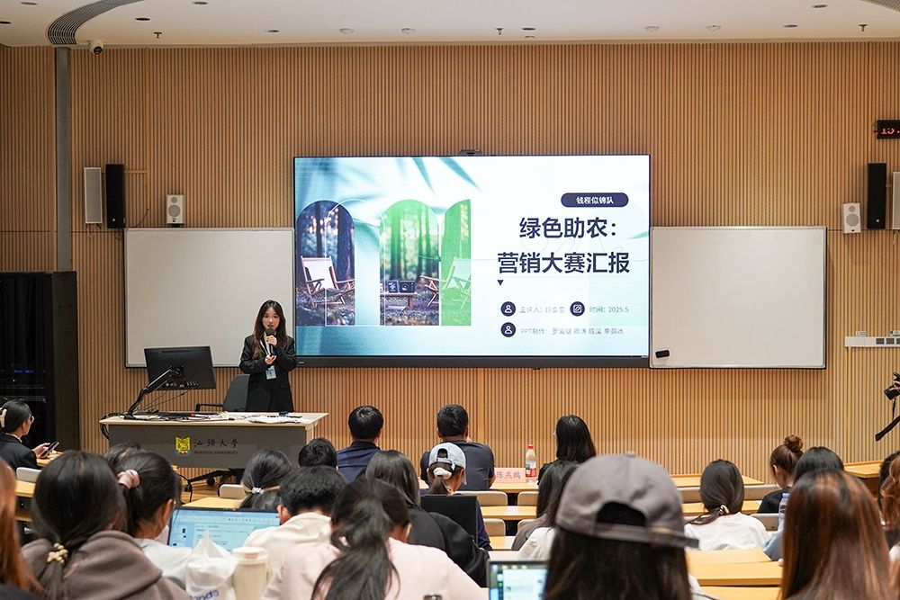 大赛前期,商学院举行“市场营销策划”主题分享会,帮助学生加深对助农营销的了解,组织学生走进农产品生产基地实地考察,详细了解农产品的种植情况及核心卖点,为助农实践的开展奠定了良好的基础。大赛将ESG(环境、社会和公司治理)理念深度融入营销实践,引导学生不仅关注经济效益,更注重环境保护、社会责任和可持续发展。各团队在营销方案中充分考虑了农产品的绿色生产、包装的环保设计以及对乡村文化的传承与推广,真正实现了经济效益与社会效益的有机统一。