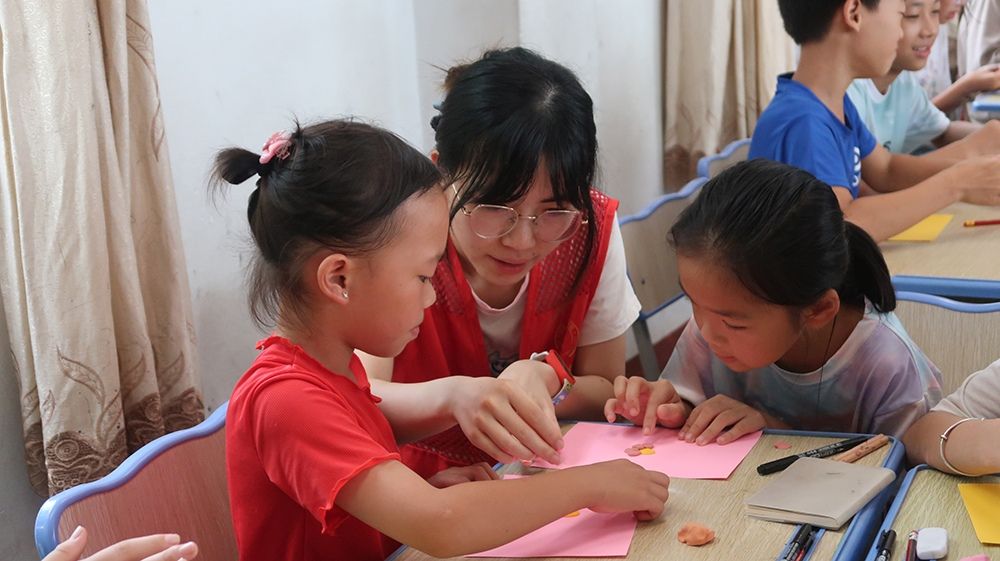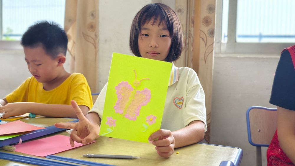 队员们带领学生们进行了潮汕建筑装饰绘画创作和创意手工制作。队员们通过介绍潮汕建筑中极具特色的嵌瓷、木雕装饰艺术,教授学生运用彩笔、素描纸等工具,临摹并且创作潮汕建筑装饰图案。绘画过程中,队员们引导学生观察图案的线条、色彩搭配和构图特点,让学生亲身体会潮汕建筑装饰艺术的魅力,提升艺术审美和绘画表现能力。此外,队员们还引导学生以潮汕建筑元素为灵感源泉,激发学生的创意灵感,为学生提供彩纸、黏土、剪刀等丰富材料,鼓励学生大胆发挥想象,制作创意手工。在创作过程中,队员们积极引导学生将潮汕建筑文化融入作品,培养创新思维,加深其对潮汕建筑文化的理解与热爱。