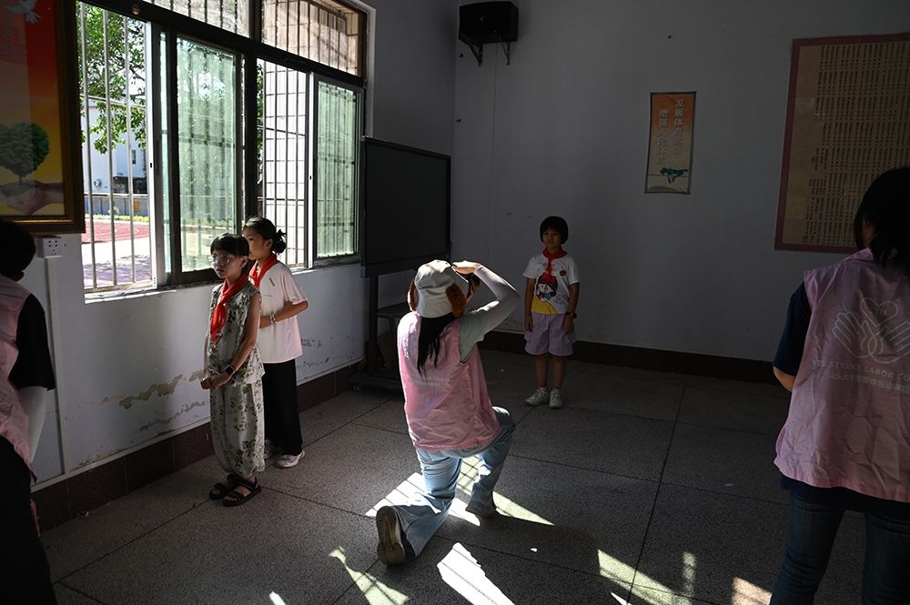 采风团队第四站走进揭西县灰寨镇南洋村行知小学,以温暖镜头为孩子们编织“梦想纪念册”。学员们蹲身与孩子交流,一边捕捉他们纯真的笑脸拍摄肖像,一边倾听“想当乡村教师”“要做农业科学家”的稚嫩梦想,还当场打印照片送到孩子手中,让梦想有了具象的纪念。