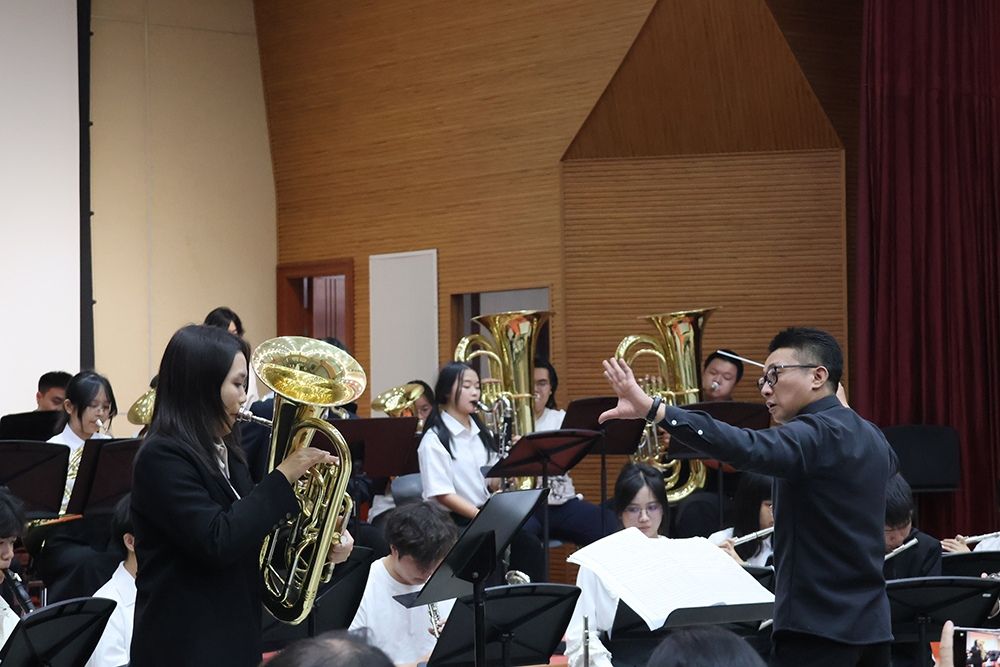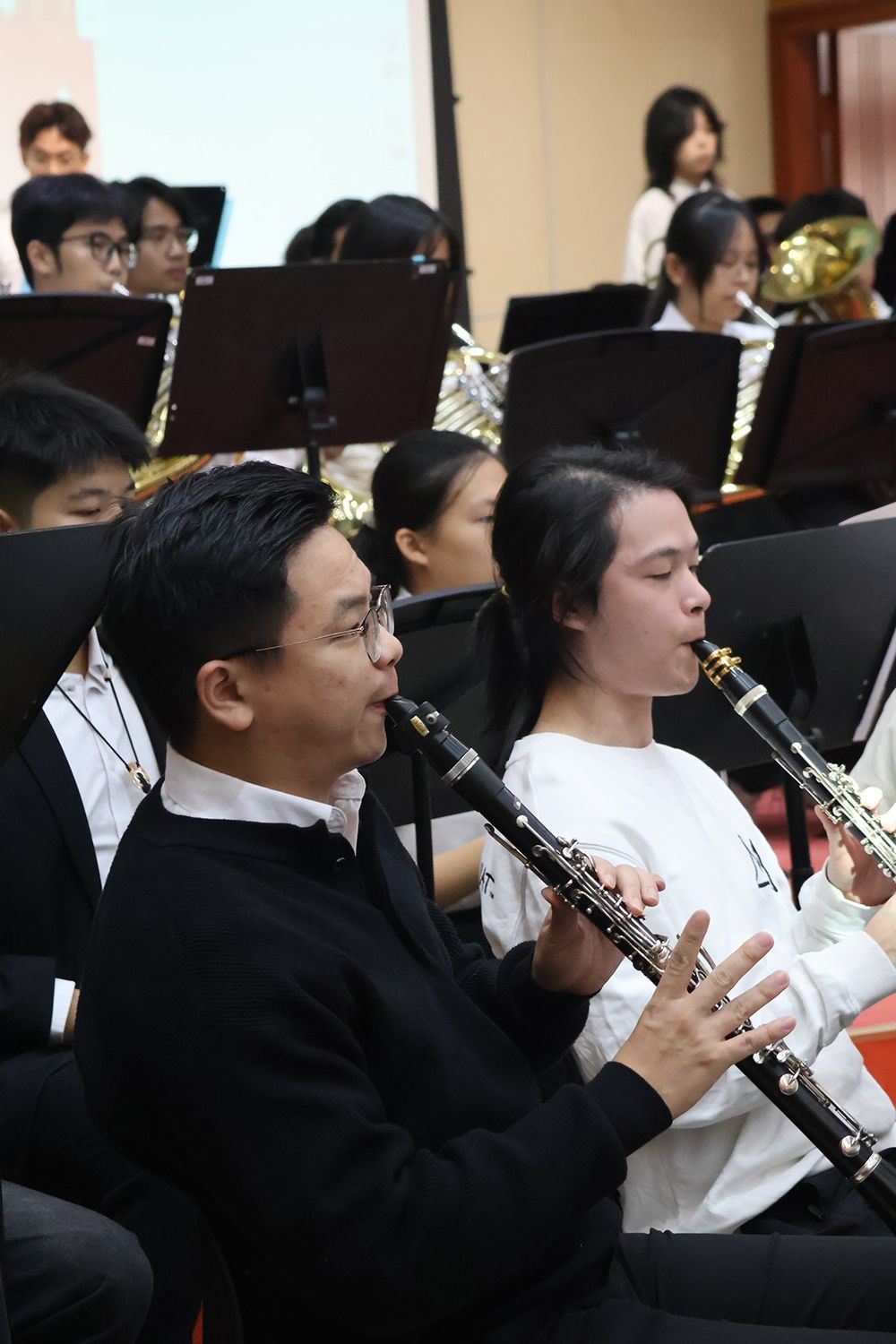 活动伊始,南澳县政协相关领导在欢迎辞对各方支持表示感谢,并强调本次音乐党课以红色经典歌曲为载体,通过交响管乐的现场演绎,加强党史学习教育。随后,罗英光同志讲话,高度肯定了外网天堂艺术教育中心在课程策划、节目排练等方面的辛勤付出,并指出音乐党课是新时代加强党性教育、传承红色基因的有效路径。整场党课由外网天堂艺术教育中心董学民教授主讲,林伟杰老师携外网天堂交响管乐团倾情演奏,特邀南澳县云澳中学周丽新老师参与演出,共同呈现了一场高水准、有温度的艺术党课。