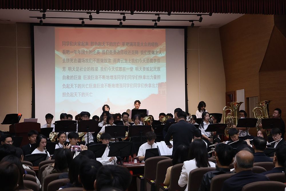 演出结束后,应观众热烈掌声,乐团加演一曲,现场掌声与节拍交织,洋溢着浓厚的爱国热情。