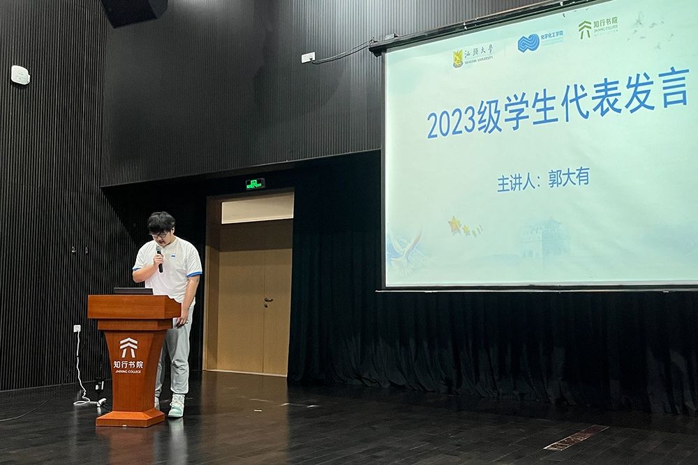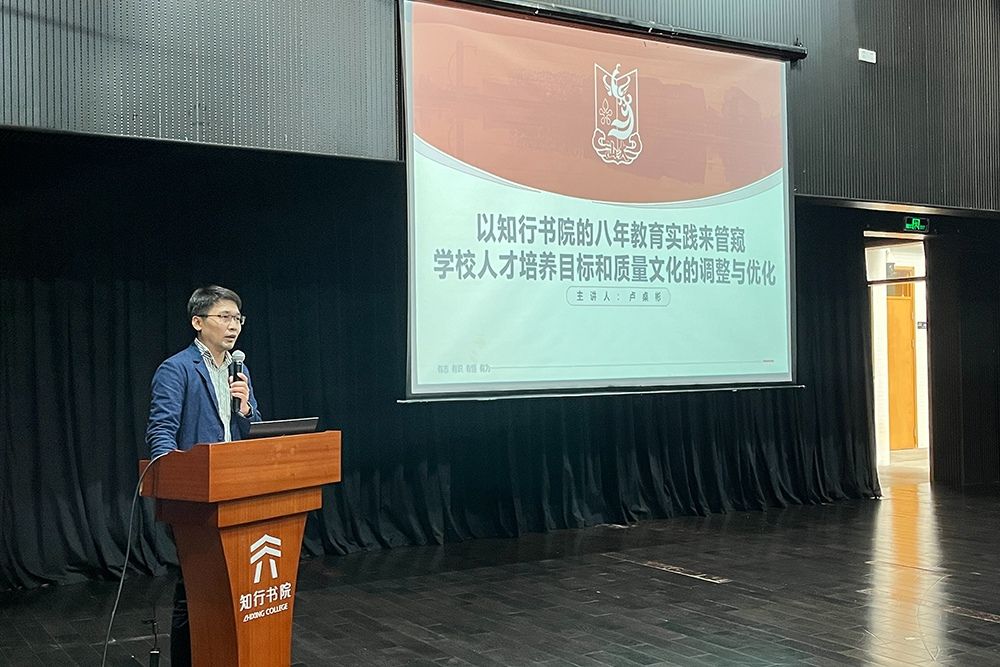接着,卢桌彬分享知行书院在实施书院制教育模式中的具体实践和成果。他详细说明了知行书院如何通过整合课堂教学与课外活动、增强学生社区感以及推广服务学习项目,来培养学生的全面能力。他强调,书院制不仅仅是一种教育模式,更是一种培养未来领导者的理念,希望通过这种方式,为同学们提供一个充满挑战与机遇的学习环境,使同学们能够在未来的学术和职业道路上取得成功。