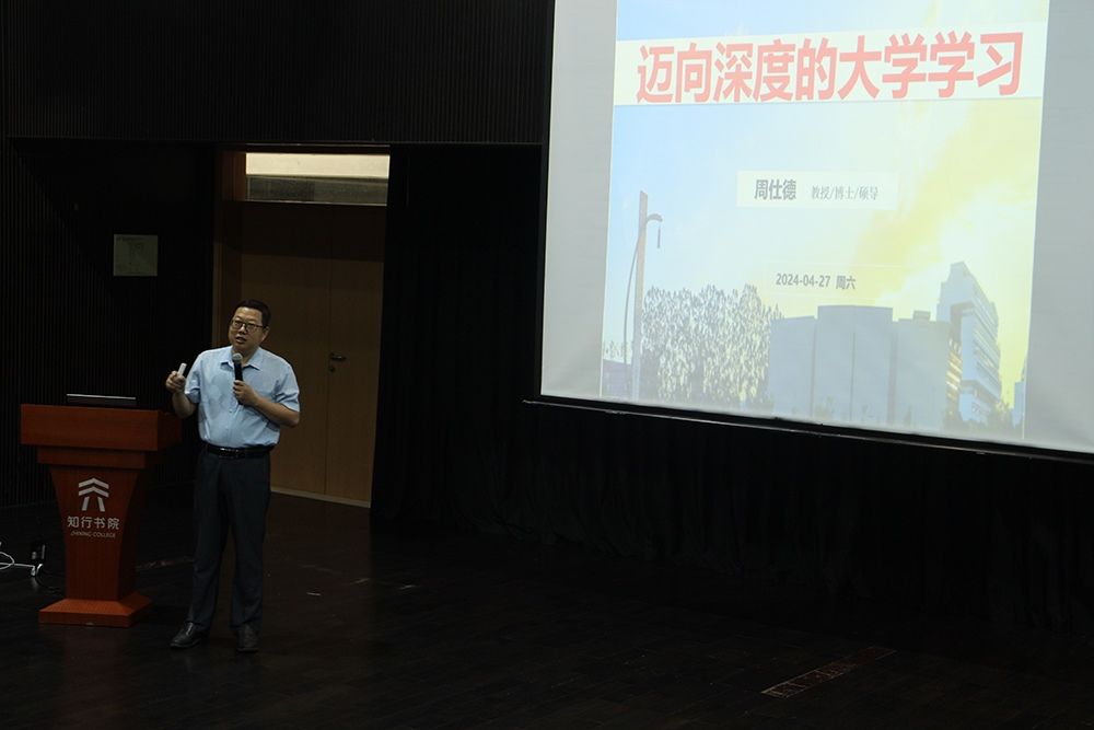 4月26日,周仕德教授以“迈向深度的大学学习”为题,在知行书院二楼报告厅开展专题分享,从教育理论的角度对学校优化人才培养总目标、构建质量文化新生态的工作要求进行科学讲解,结合新时代的要求对如何增强大学学习的深度进行讲授,激发学生发展的内驱力。他表示,大学最重要的任务不在于掌握多少现成的知识或者学问有多深,关键在于要学会学习,掌握做学问的方法。同时,他希望新时代的大学生应该努力追寻时代使命,不做精神贫穷大学生。