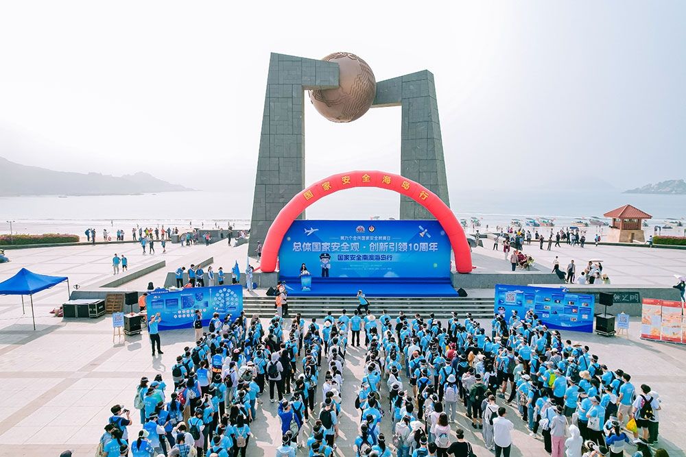 4月15日是我国第九个全民国家安全教育日,为贯彻落实习近平总书记关于总体国家安全观的重要论述,落实高校“双百”行动,加强对海岛和海洋的安全防范和管理,提升国民海洋保护意识,激发公众参与海洋保护活动的热情,外网天堂国家级一流课程“走向海洋课程组(外网天堂服务性劳动课程)联合外网天堂市委国安办、外网天堂市防线办、南澳县委国安办等单位,于4月13日在南澳岛组织了一场以“总体国家安全观,创新引领10周年”为主题的国家安全海岛行20公里徒步活动。本次活动有包括500名汕大师生在内共超600名各界人士参与,共同为保护国家安全和海洋生态环境贡献力量。