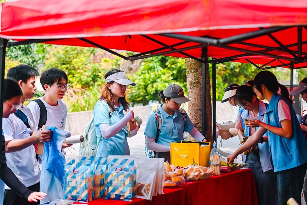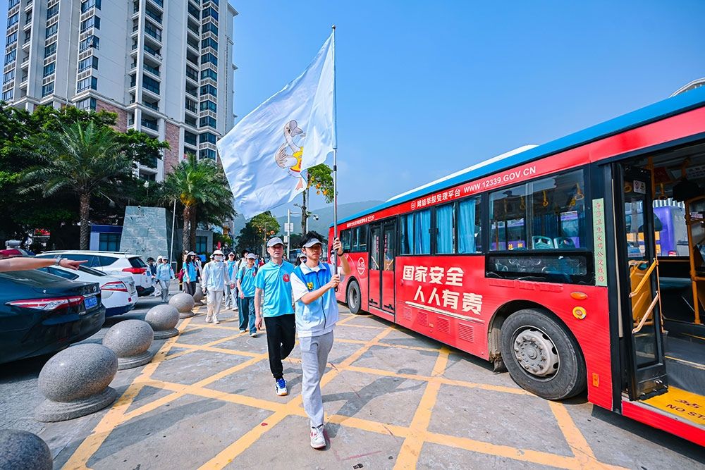 徒步开始,数百名徒步参与者带着对国家和自然的热爱,踏上了探索南澳岛的征程。队伍先后到达金银岛、深澳天后宫、南澳二号公路、雄镇关、后兰村,感受了当地淳朴的民风和独有的风土人情。徒步路线穿越了南澳岛的多个景点,参与者领略了海岛的秀美风光;沿途补给点为徒步者准备了饮用水、水果和食物等补给品,成为大家互相鼓励、分享经验的温暖场所;走向海洋课程组同学还通过问卷调查的方式,使徒步者了解到更多国家安全知识。