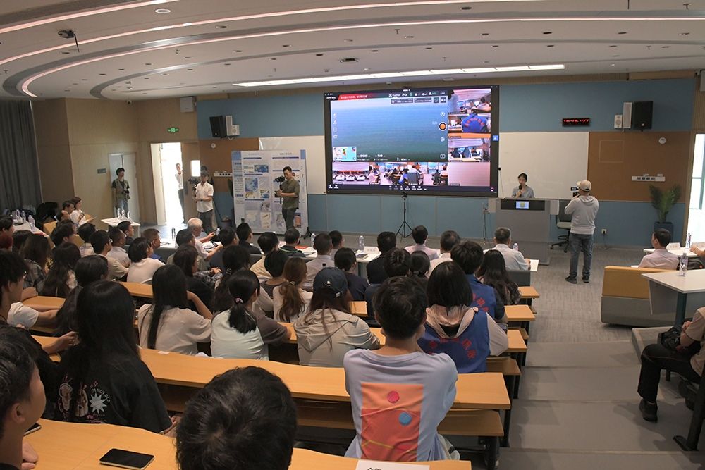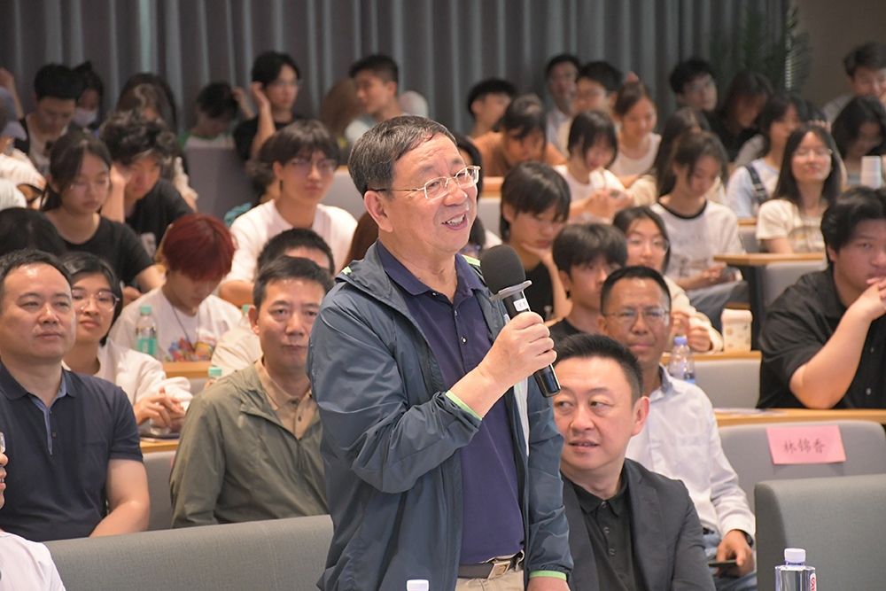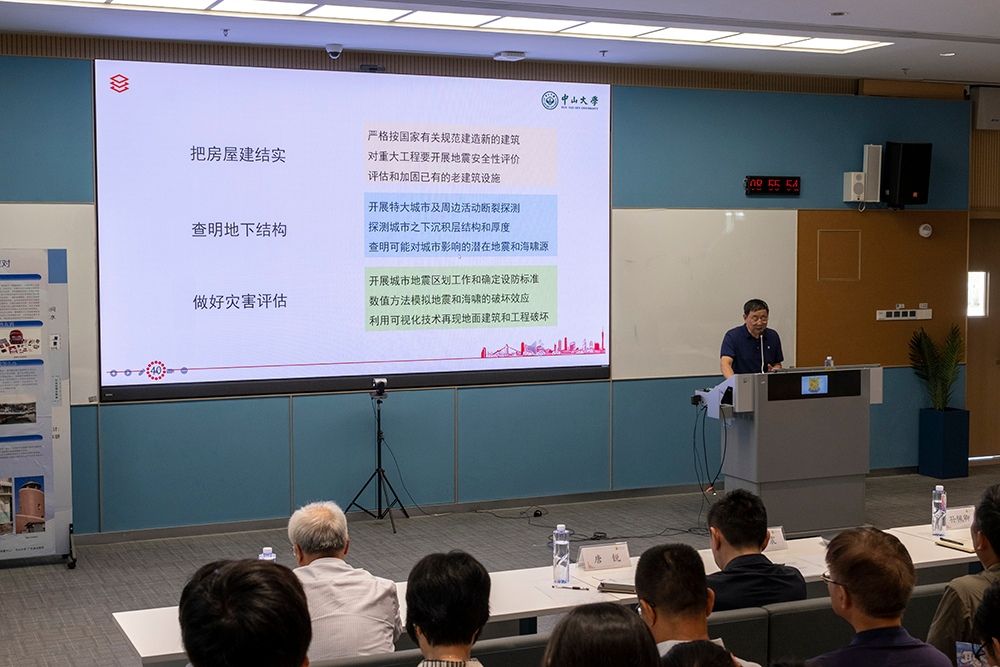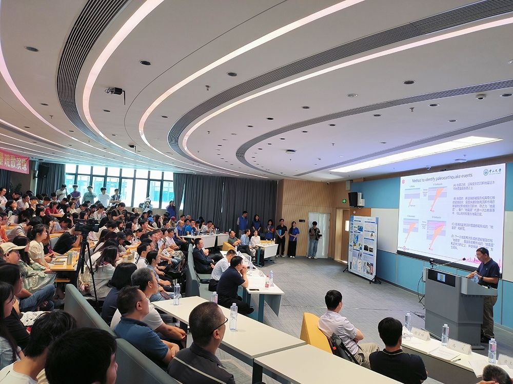 张培震为师生们作题为《南海北部地震与海啸灾害及对华南沿海的影响》的科普报告。他以深厚的科研及学术造诣,结合唐山地震、汶川地震等实际案例,深入浅出地讲解了地震孕育过程与形成机理、滨海断裂带构造属性和活动性等内容,以及华南沿海区域潜在的地震海啸灾害威胁,提出相应的防灾建议,并与现场听众进行问答互动交流。