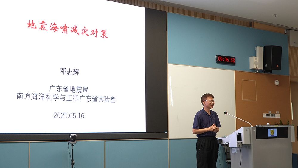 省地震局邓志辉研究员作题为《地震海啸减灾对策》的科普报告,系统介绍了地震海啸灾害特点、地震海啸情景构建速报系统等防灾技术措施,以及本次演练的科目内容。