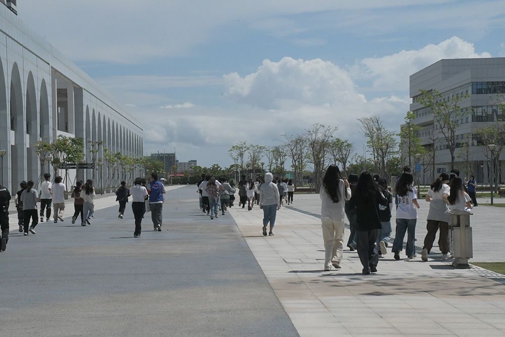 地震海啸应急定量疏散演练由胡忠担任指挥长,资源管理处林兵峰处长为指挥员,省地震局邓志辉研究员、卢帮华院长分别为参谋长、总监。东海岸校区管理委员会姚熠主任主持了演练活动。