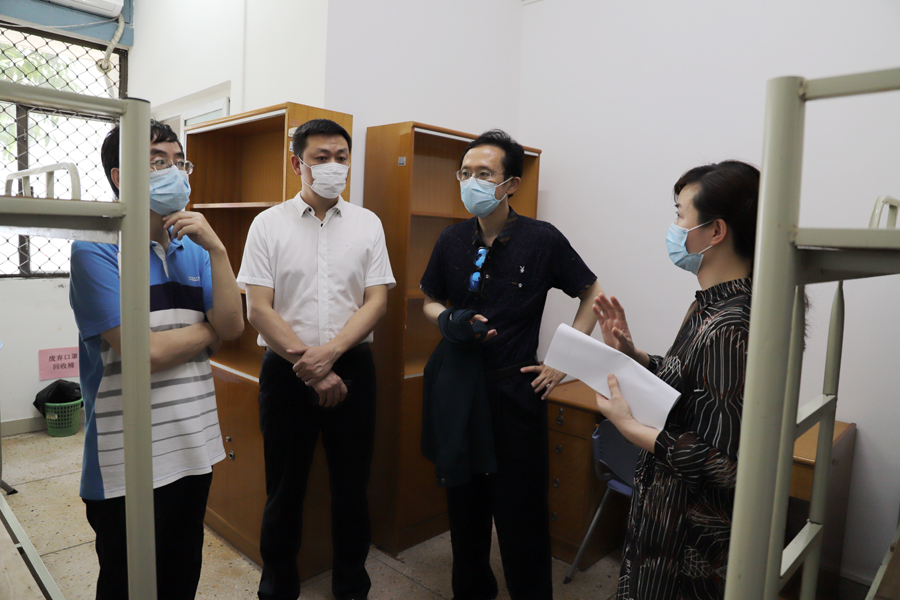 本次演练设置校门口、备用医学观察区、公共实验室、研究生宿舍和第二食堂五个场景,主要内容为校园师生日常活动和应急处置。党委书记、校长姜虹,执行校长王泉、党委副书记周镇松、纪委书记冯兴雷、副校长喻洪、副校长刘文华等校领导现场指导工作,并在防疫细节上提出专业性指导意见。党政办公室、资源管理处、保卫处、网络与信息中心、学生处、研究生院、理学院等相关任务单位参加了演练。