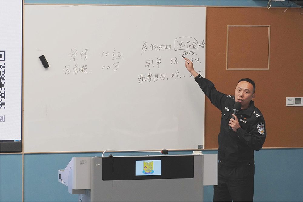 随后,陈家豪以2025年1月至今校区学生发生因演唱会门票代购、兼职刷单返利、机票退改签等被诈骗的案例和数据,提醒同学们在日常经济活动中,凡是脱离平台交易、兼职刷单、交友转账、高收益理财、私下交易游戏装备等行为均属诈骗行为。陈家豪针对当前跨境反诈形势,指出诈骗分子通过精准画像实施定制化骗术,提醒师生警惕各类新型诈骗陷阱,遭遇诈骗需立即保存证据并在黄金期内报警止损。