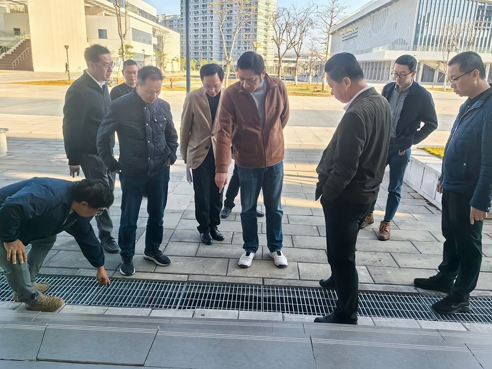 在行政楼消防监控室,周镇松详细了解了消防系统、监控系统运作、维护情况,要求工作人员做好日常巡查和登记,按时维护保养消防设施,及时消除安全隐患。在室外园区,周镇松重点检查了校区室外排水明渠更换铸铁盖板项目的使用情况及效果,并就地面沉降、树木固定、排水渠树叶堵塞等可能存在安全隐患情况,要求校区管理人员及时清理维护,杜绝各类安全事故发生。