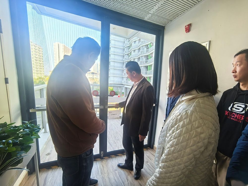 在明德书院,周镇松查看了宿舍走廊加装玻璃门及书院架空层改造情况,要求书院明确架空层管理责任,及时加固相关设施,确保宿舍生活环境安全舒适。