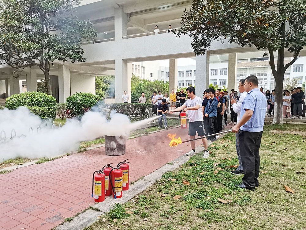 化学品泄露应急处置演练结束后,保卫处消防主管丛军指挥同学们捂住口鼻俯身快速通过模拟烟雾的楼道,体验了一次火场紧急疏散。之后,丛军向同学们介绍了安全警示标志、防毒面罩和各种灭火设施,演示了干粉灭火器和灭火毯的正确使用方式。随后同学们分别进行了灭火体验。