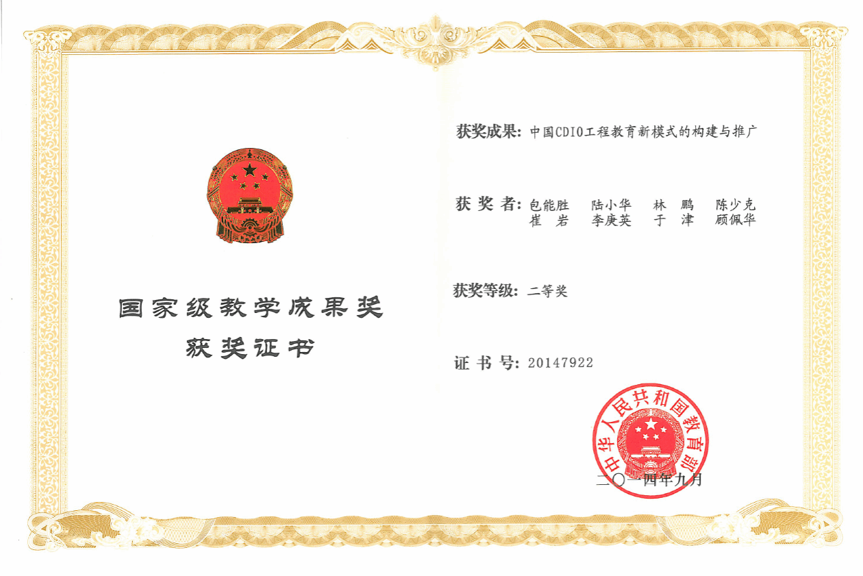 教学成果《中国CDIO工程教育新模式的构建与推广》获国家级教学成果奖二等奖
