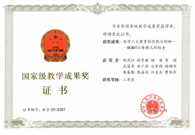 教学成果《医学人文教育的实践与创新——HEART培养模式的探索》获国家级教学成果奖二等奖